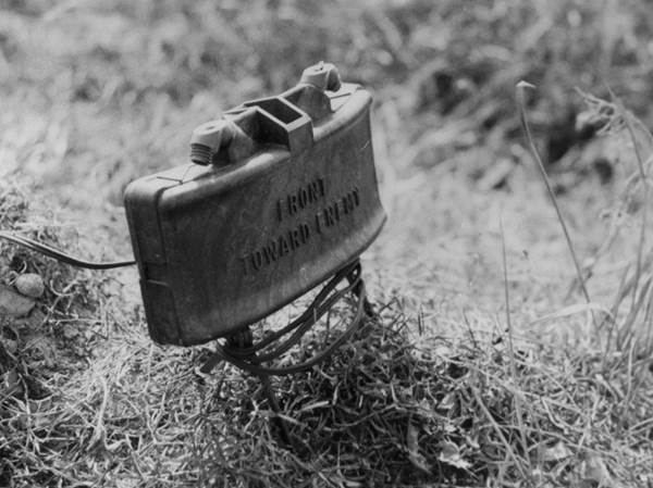 Claymore mine (M18A1): A command-detonated, electrically-fired directional anti-personnel mine used extensively by US forces during the Vietnam War. The Claymore mine employed a curved plastic body that encased a matrix containing 700 steel pellets positioned in front of an explosive charge of C-4. The Claymore mine was unique in that it could be quickly emplaced and later recovered if not fired, so it was extremely well suited for protection of fixed positions (bases and camps) as well as temporary positions like patrol perimeters and ambushes.